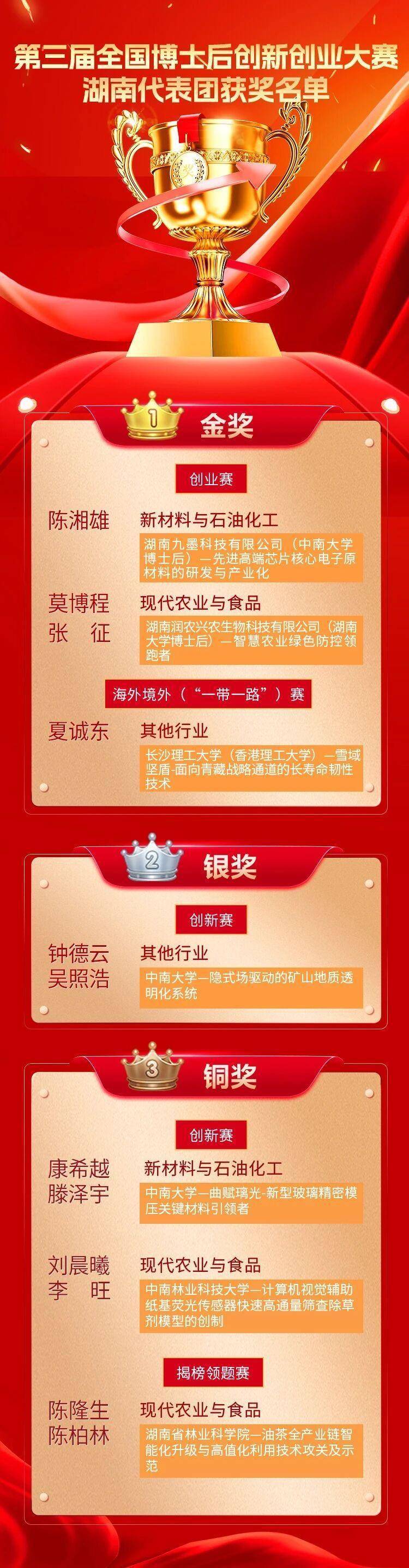 3金1银3铜!湖南获全国博士后创新创业大赛历史最佳成绩